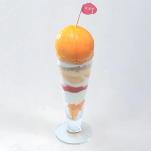 岡山県産の桃の種を取り除いて、中に生クリームとカスタードクリームを詰めました。インパクト抜群のパフェです!※9月は黄金桃での提供となります。
