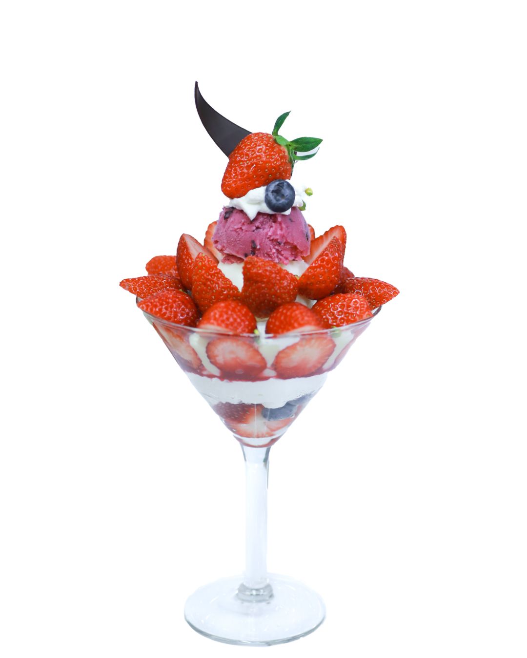 いちごを贅沢に使用しマスカルポーネやカシスアイスなどと合わせたパフェです。